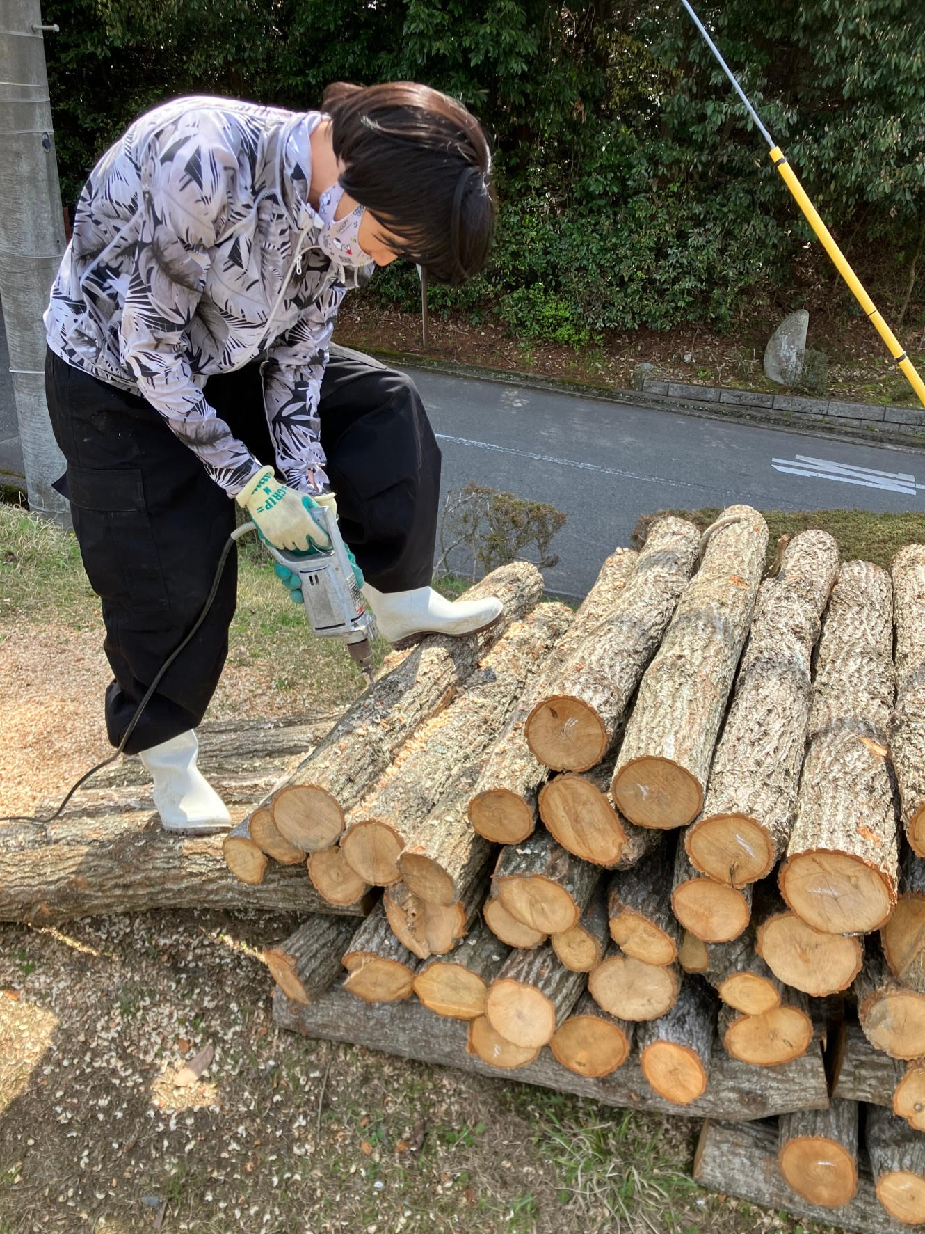 僕が農園にかかわり最初に大きな作業に取りかかったのが、この原木しいたけの菌打ちでした。もう一年半前のことになります。