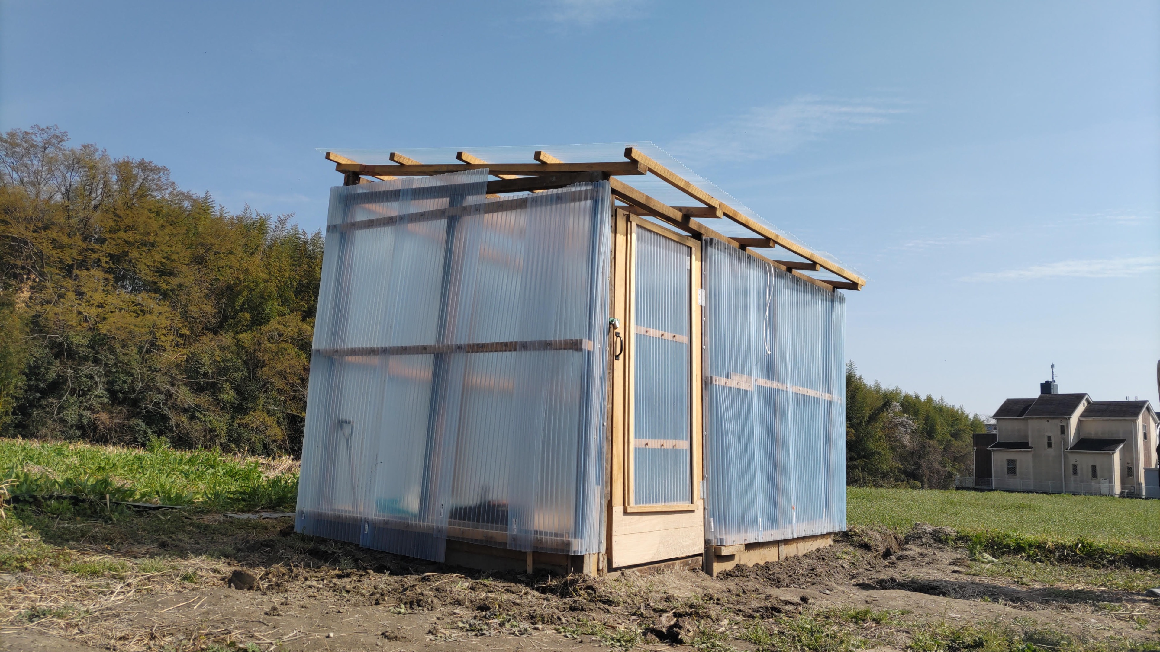 物置き小屋が完成。果樹の植え付けも(Y.O.)