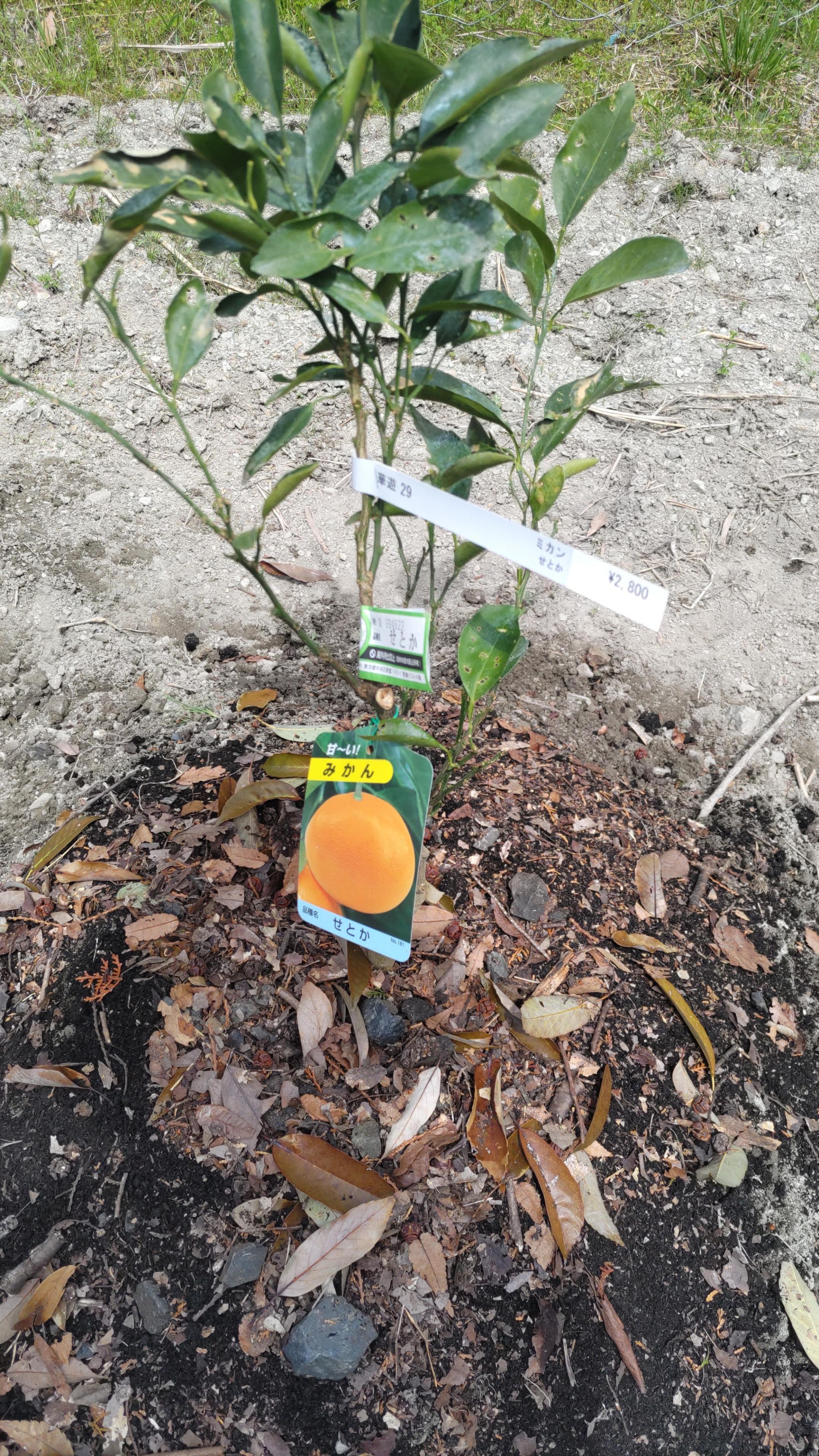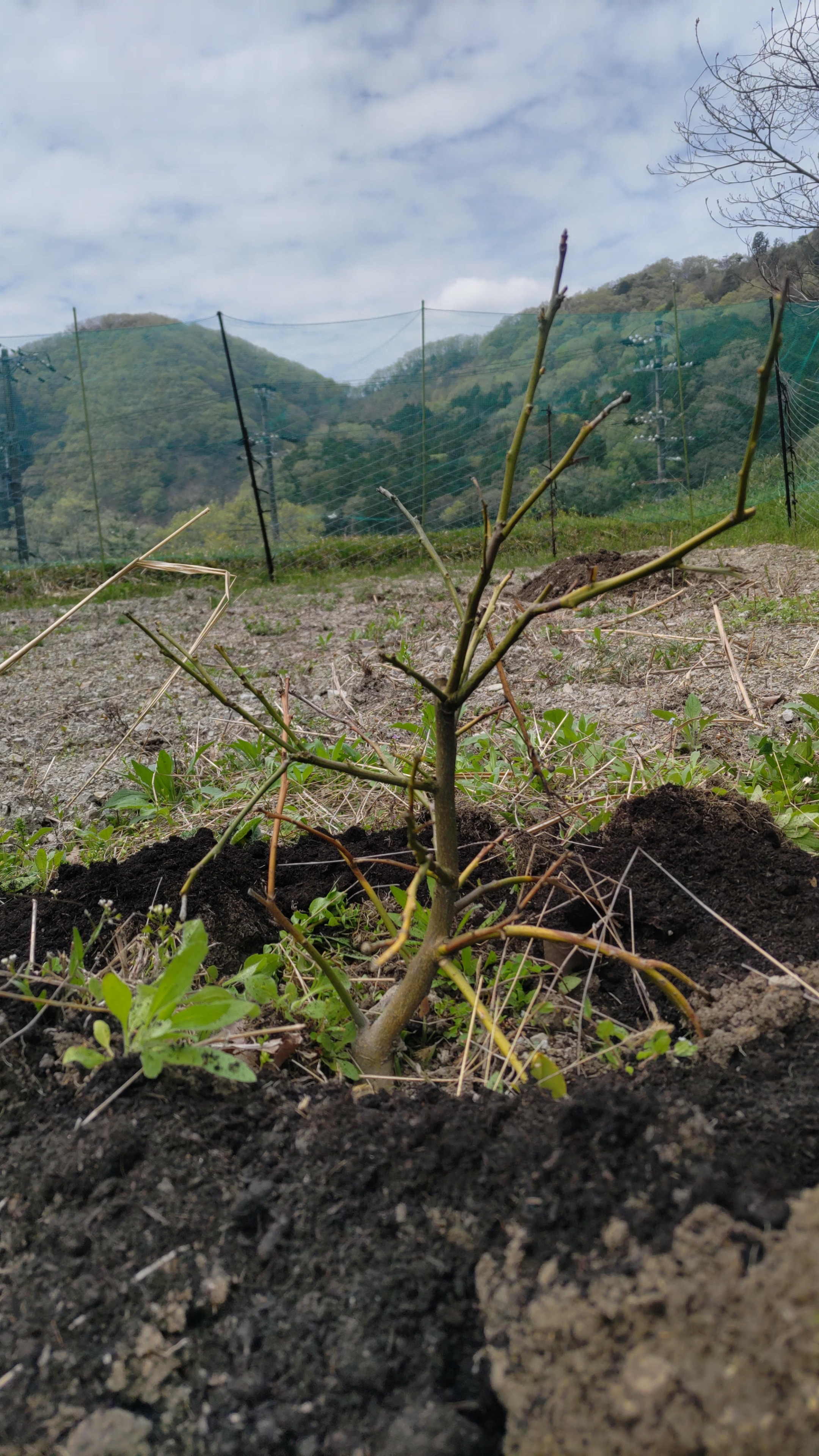 とりあえずは、ブドウ4本、みかん3本、桃2本を買い、国崎の畑に植え付けしました。